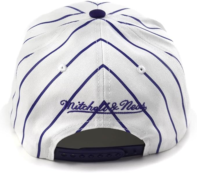 El Jockey Mitchell & Ness Retro Pinstripe Lakers es un accesorio imprescindible para los fanáticos del equipo angelino y para quienes buscan un estilo auténtico con un toque retro. Fiel al sello de calidad de Mitchell & Ness, esta gorra destaca por su estética clásica inspirada en las históricas camisetas pinstripe, combinando líneas finas en contraste con un diseño limpio en blanco y lila, los colores característicos de Los Angeles Lakers.