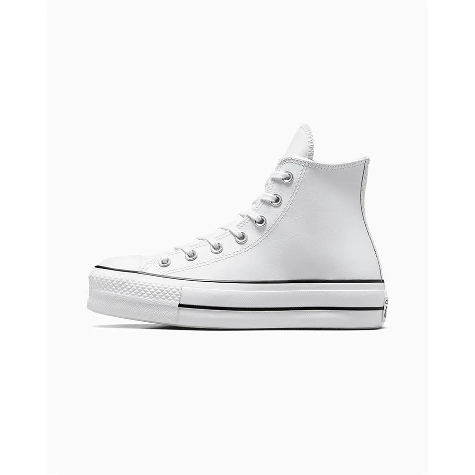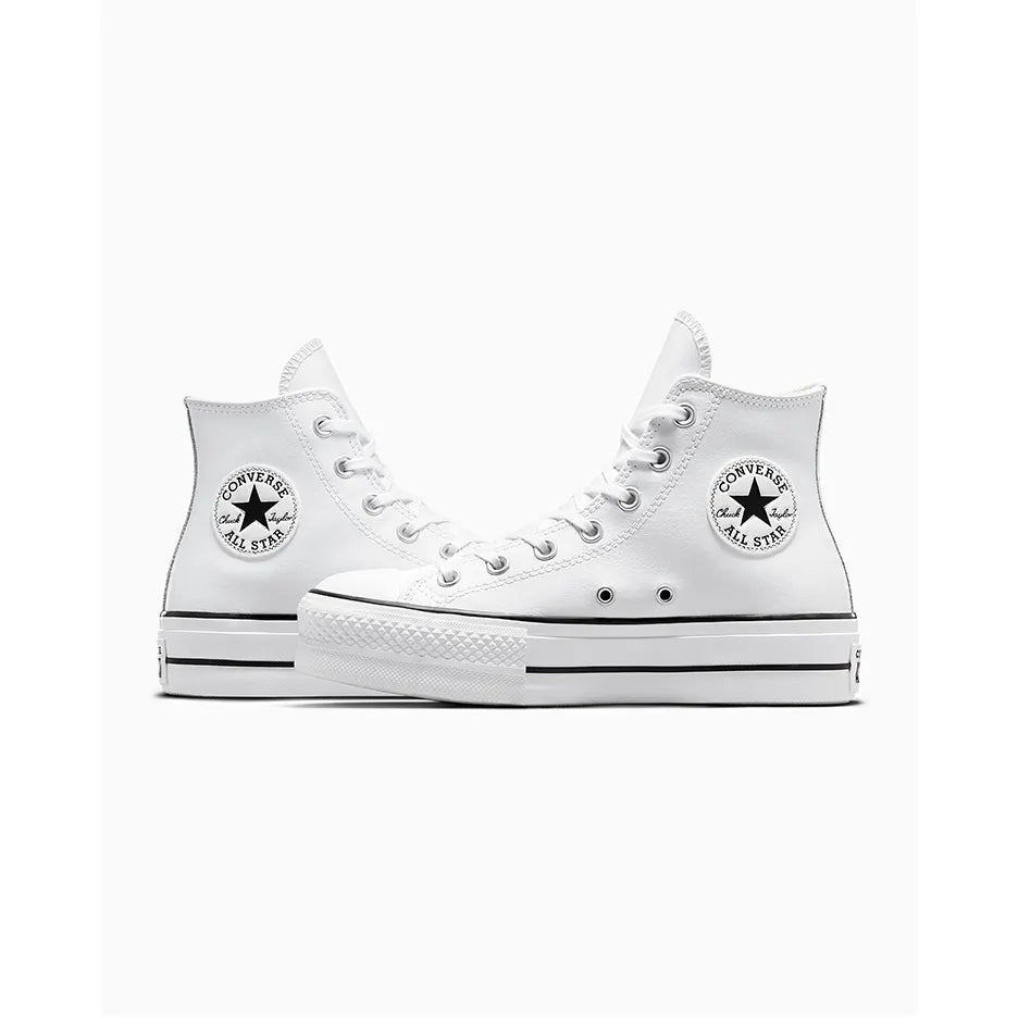 Las Converse Chuck Taylor All Star Lift High White elevan el clásico estilo de las Chuck Taylor con una versión moderna, sofisticada y con más altura. Su diseño de caña alta y parte superior de cuero premium blanco ofrece un aspecto elegante y limpio, perfecto para quienes buscan un toque más refinado sin renunciar al espíritu atemporal de Converse.